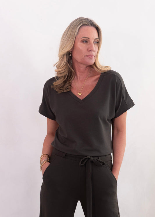 ATHENA v-neck, short sleeve top, olive